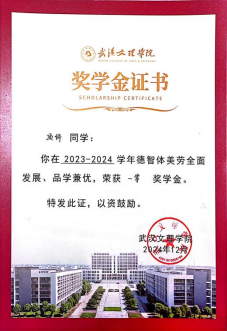2023年12月获精神文明奖学金