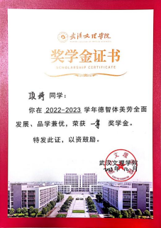 2023年3月获优秀学生干部奖学金