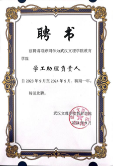 2023年5月被评为优秀学工助理