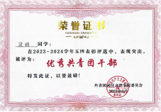 2024年5月被评为优秀共青团干部