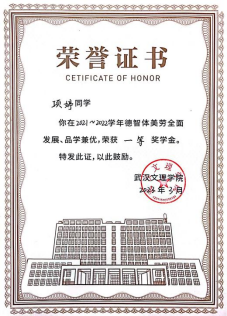 2022年6月被评为优秀学生干部